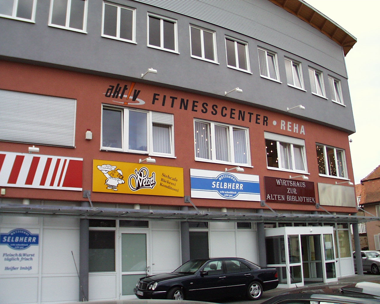 Im Haus - Netto Lebenmittelmarkt, Bekleidung, Bäckerei, Solarium, Wirtshaus "Zur Alten Biblothek", Fitnessstudio, Tagungsräume, Krankengymnastin, Praxis für Orthopädie und Wohnungen.